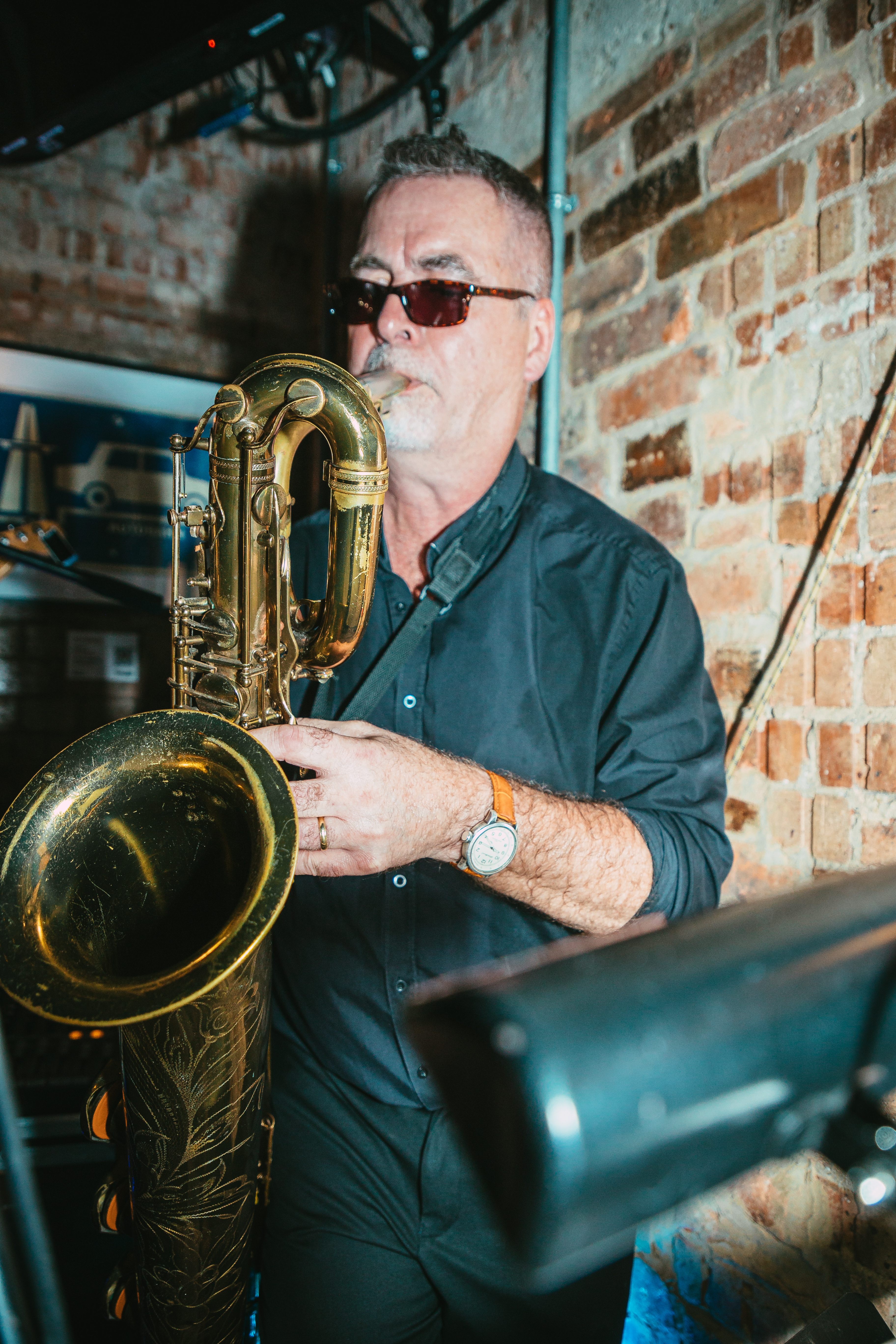 Rupert plays the baritone saxophone